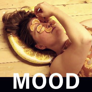 The audience is gathered in the gallery around the ladder and the hatch. I am situated above and no-one can see me. First I lower a hand down the hatch, feel the ladder and take it back up. Then I lower 1 leg and alternate it with my head upside down. I then let my backpack fall down the hatch, before descending the ladder. The backpack is being pushed over the railing, I go back against the wall and take a plunge forward to dive under the railing. Pushing myself and the backpack forward, I go to the couch. There I sit down and take the blue towel out of the bag. I repeatedly shake out the towel on the ground and pick it back up again, until I leave it there neatly spread out in front of me. Taking up a diving position on the edge of the couch before taking breath and dive onto the towel to do crawl swim motions on my belly. Go back up and sit on the couch, take the swimming aid out of the bag and take a seat on the armrest of the couch. I place the aid between my feet and do leg exercises before quickly plunging back on the towel, looking back a couple of times to the man sitting on the couch. Then, sitting back on the couch, I take a yellow cutting board and start peddling in increasing motions with the board stuck out in front of me. I then quickly dive back on the towel and peddle with the board in front for some time. Sitting back, I put the board on my knees and take off my goggles. Out of the bag I take a yellow banana, put it on the board and push it forward on the towel. Then, from the bag, I take a round pizza cutter and start rolling over the floor past the audience before coming back to the cutting board and start slicing the banana in pieces. I then take up the last diving position on the couch and plunge with my head in the banana, taking up chest crawl motions while gasping for air. I get up, before taking the board and the bag with me.