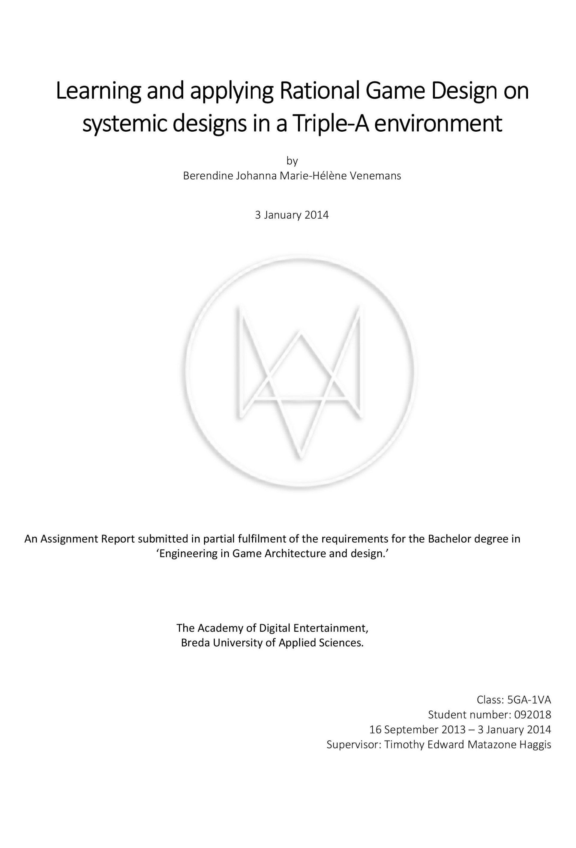 Learning and applying Rational Game Design on systemic designs in a Triple-A environment.